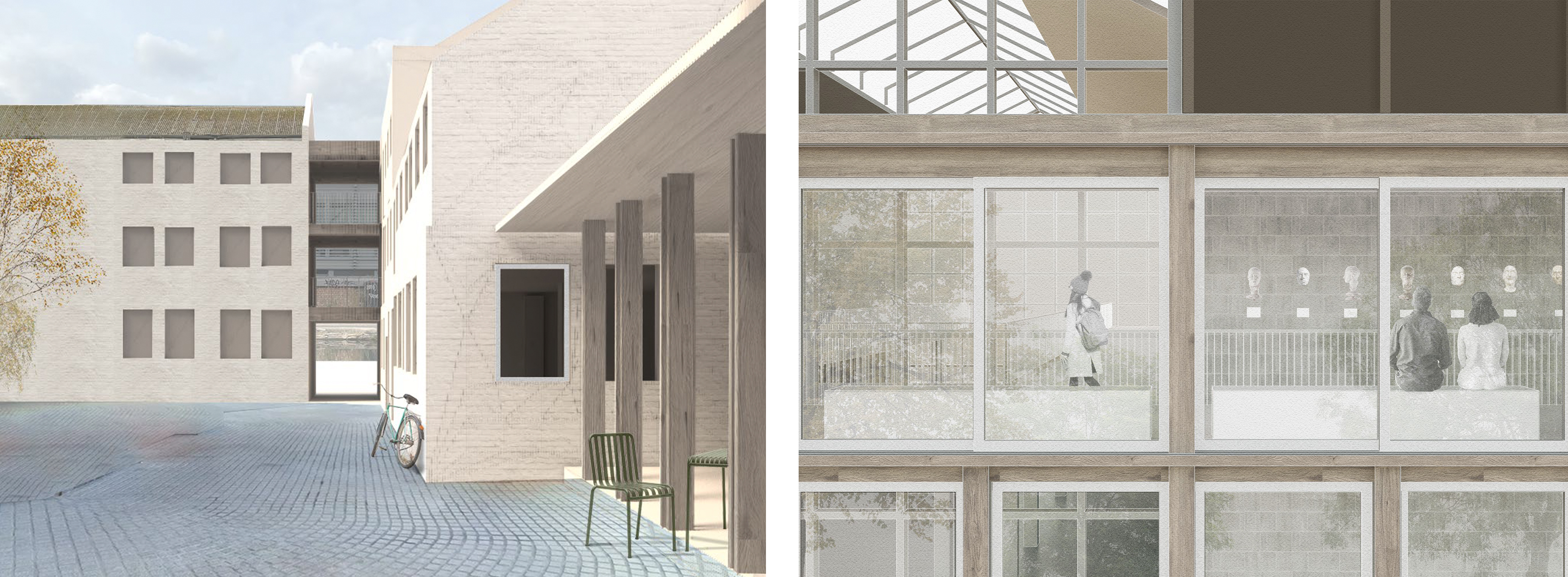 The act of demolition is not incidental, but rather, integral to the new architecture. Not only are the carbon consequences of each decision to demolish carefully appraised, but also it follows a clear logic: to strip away the more recent, low-quality light steel structures such that the original gabled masonry buildings can be properly read. Against this, a series of structural timber volumes are deployed to provide a mix of spaces ranging from a naturally-lit, double-height exhibition hall for the treasures collection, to a learning pavilion that opens onto a new courtyard, and to a lecture hall that doubles as a multi-media exhibition space. The architecture takes cues from the attitude of contingency and opportunism that pervades the current photography studios: the shell of the self-storage warehouses is retained and upgraded to meet the demands of a modern museum archive, whereas the existing floors within the relatively constricted gabled buildings are removed to create vertically-accentuated spaces for ad-hoc temporary exhibitions.