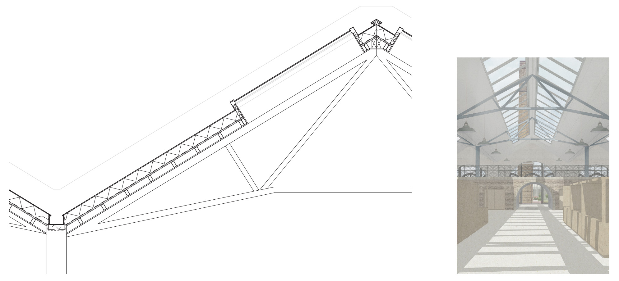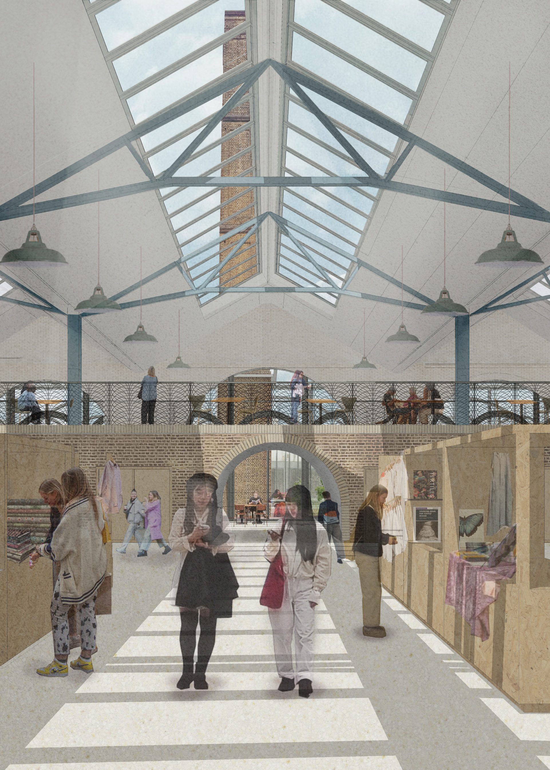 Through this scheme, the site is transformed into a central point for both craft and community, allowing up-and-coming textile makers to thrive in their work and be able to share this with the public. Alongside the galleries, new circulation routes and open areas, the resulting spaces create a destination that is once again an, active, vibrant celebration of East End history, deserving of its place on the historic canal.