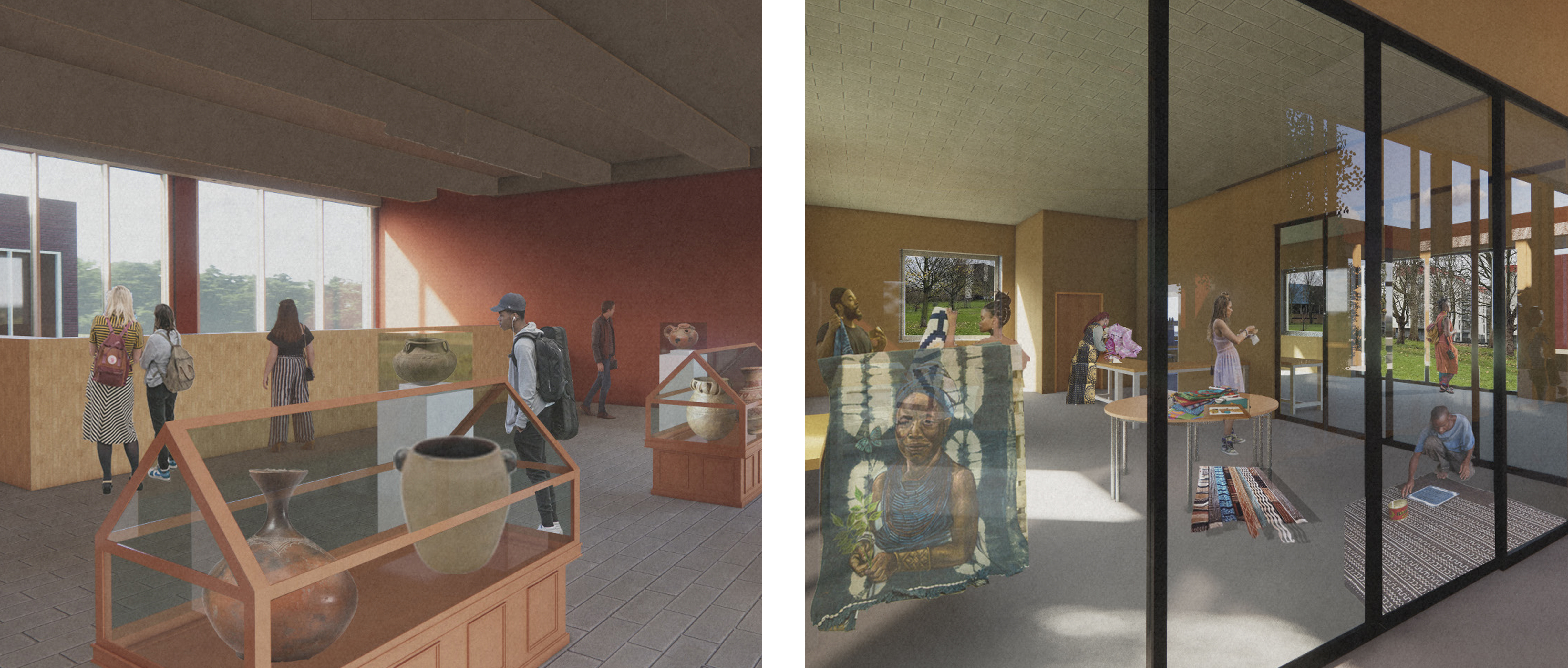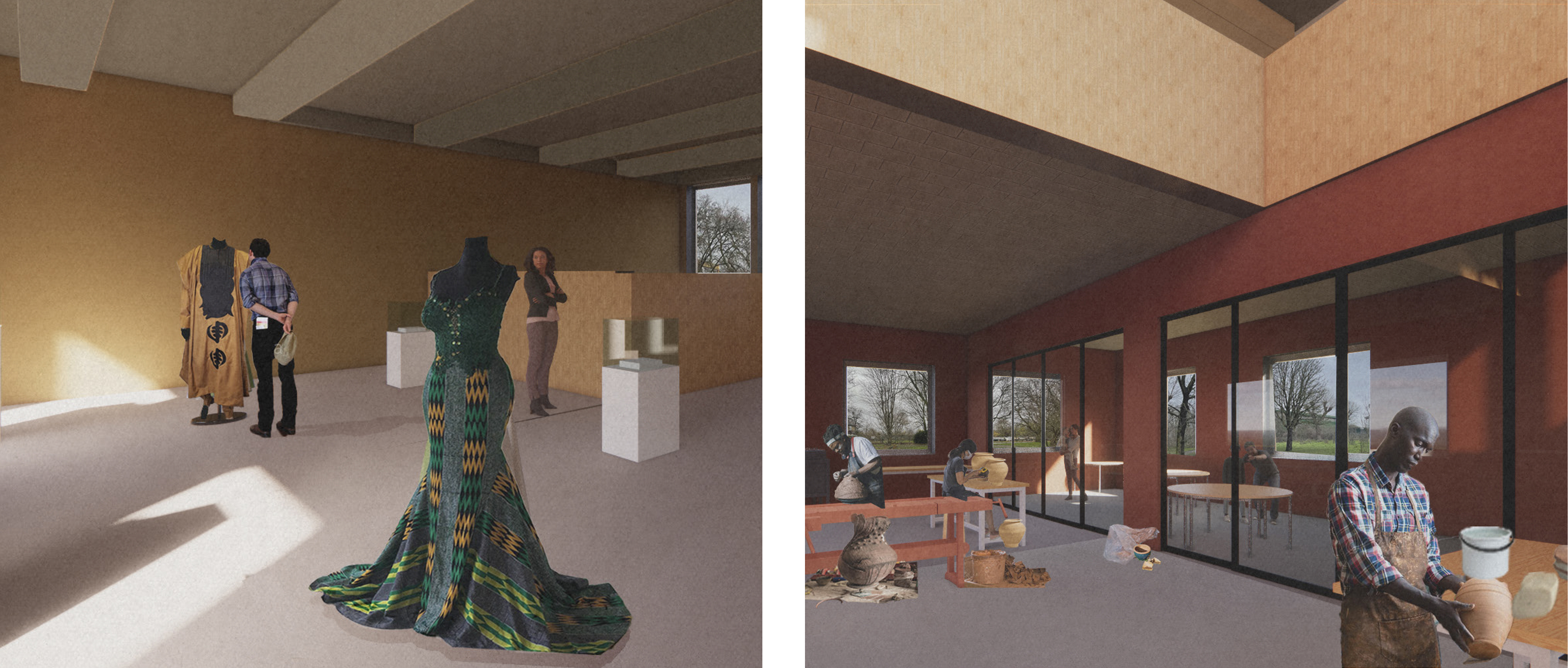 The museum will offer workshop spaces that allow local artists to practice their crafts and also for curious creative minds to explore a different avenue. Most importantly, the galleries and these spaces will be a visual interpretation, and artistic outputs of the three main themes of the museum (African Pottery, Instruments and Textiles). The overall experience of the museum will be where these components come together and how the architecture connects spaces.