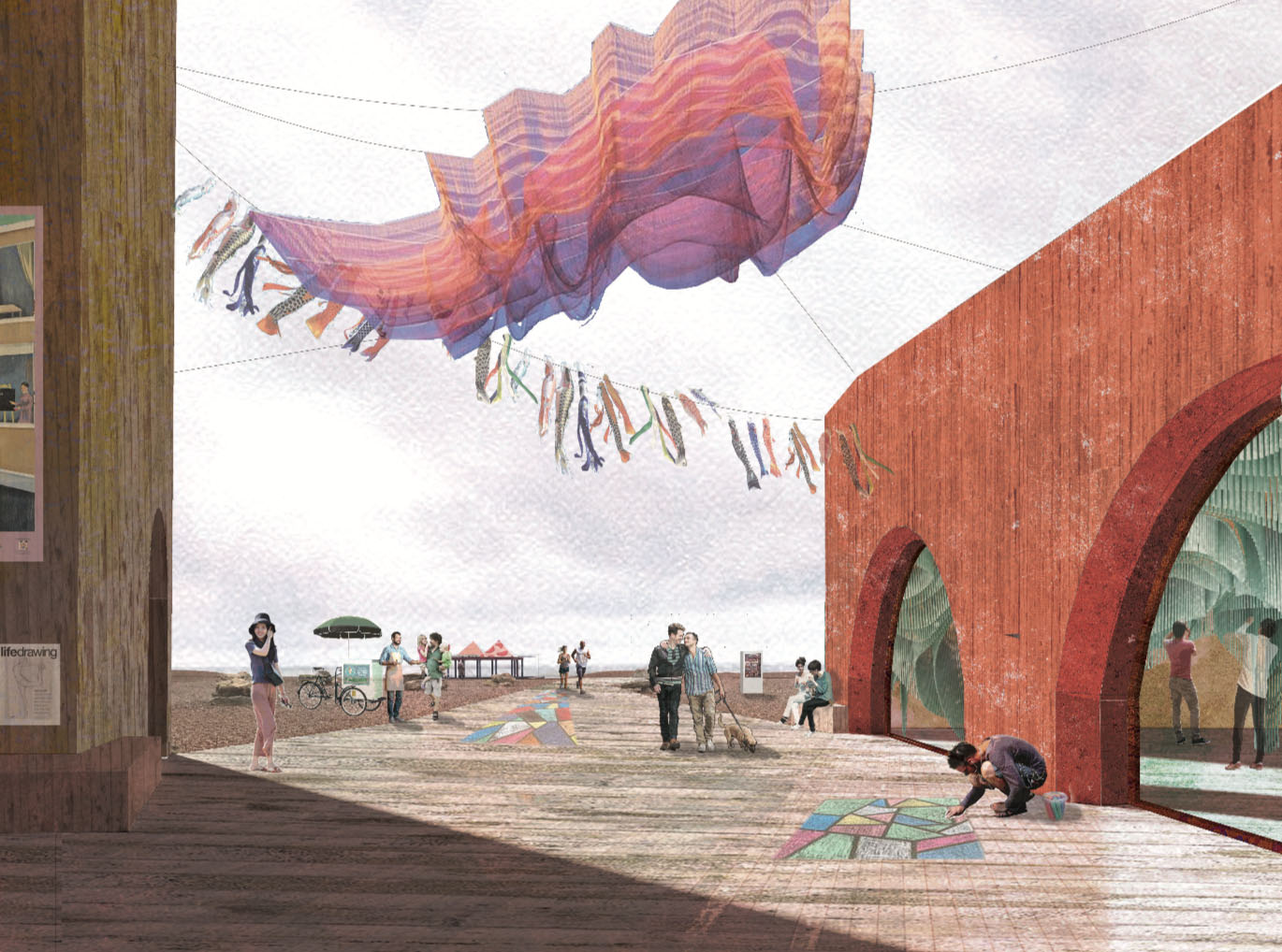 The Playhouse reinstates the site of the old Gasworks as the powerhouse of Folkestone’s post-industrial cultural transformation, in the wake of the Triennial + Urban Art Projects. This site feeds into a vibrant pathway along which activity from the Gasworks can catalyse emerging creative networks in Folkestone, while maintaining the spirit of key industrial sites. This allows existing and future communities to drive these changes and reform collective identity through the re-imagination of the late landmarks.